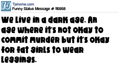 X says We live in a dark age. An age where it's not okay to commit murder but it's okay for fat girls to wear leggings.