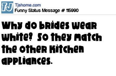 - # 39106 today, when I asked my dad why wedding dresses are white, he replied; "son, all household appliances come in white".