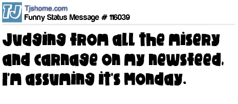 X Judging from all the misery and carnage on my newsfeed, I'm assuming it's Monday.