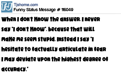- # 196143 Ever want to say I Don’t Know, without sounding stupid? Say this instead: I hesitate to articulate in fear I may deviate upon the highest degree of accuracy.
