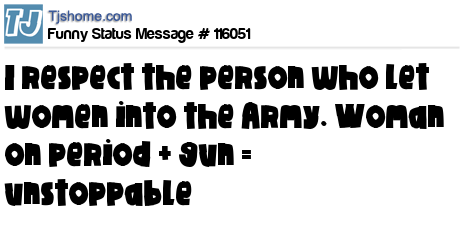 - # 129043 Whoever let women in the army, I salute you. Women on their period, with a gun... Unstoppable!