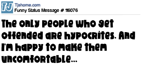 X The only people who get offended are hypocrites. And I'm happy to make them uncomfortable...