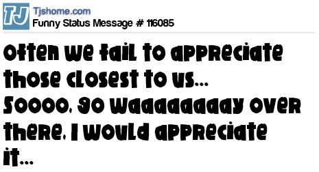 X  Often we fail to appreciate those closest to us... Soooo, go waaaaaaaay over there, I would appreciate it...