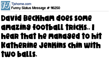 X says David Beckham does some amazing football tricks.. I hear that he managed to hit Katherine Jenkins chin with two balls.