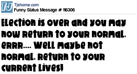 X Election is over and you may now return to your normal, errr.... Well maybe not normal, return to your current lives!