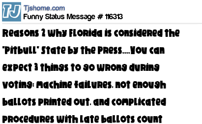 - # 116311 Reasons 1 why Florida is considered the "Pitbull" State by the Press....We have 3 categories of last minute of lazyass late voters: Latinos, Blacks and Senior Citizens. you can have 2months of early voting and that ish wont ever change!!!