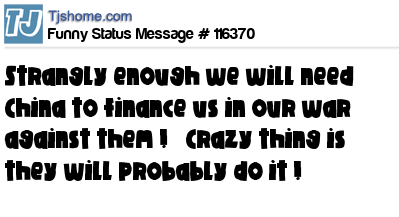 X Strangly enough we will need China to finance us in our war against them ! Crazy thing is they will probably do it !