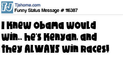 - # 116200 If Obama was really Kenyan he would have won the race by now.