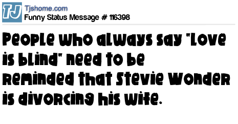 - # 116402 People who always say "love is blind" need to be reminded that Stevie Wonder is divorcing his wife