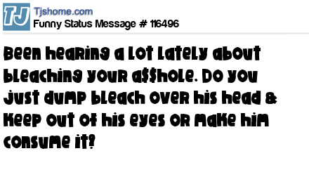 X says Been hearing a lot lately about bleaching your a$$hole. Do you just dump bleach over his head & keep out of his eyes or make him consume it?