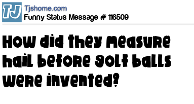- # 101036 Golf ball sized hail wouldn't be so destructive if we just made golf balls a lot smaller.Do I have to think of everything?!