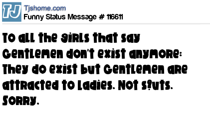X is To all the girls that say Gentlemen don't exist anymore: They do exist but Gentlemen are attracted to Ladies. Not s?uts. Sorry.