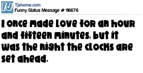 X is I once made love for an hour and fifteen minutes, but it was the night the clocks are set ahead.
