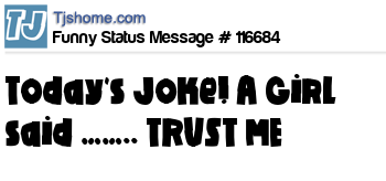 - # 70147 Girls say the only man they can trust is their dad, men say the only girl they can trust is the one they're having an affair with :P