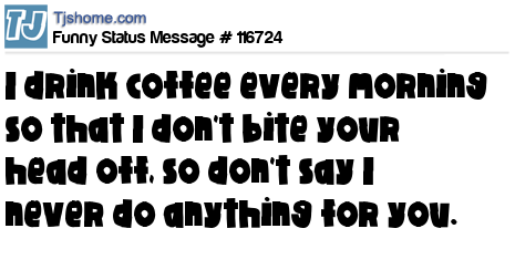 X says I drink coffee every morning so that I don't bite your head off, so don't say I never do anything for you.
