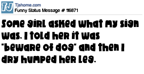 - # 156273 Some girl asked what my sign was. I told her it was "beware of dog" and then I dry humped her leg.