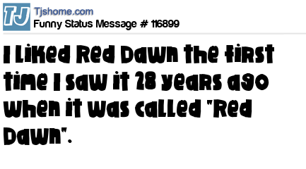 X says I liked Red Dawn the first time I saw it 28 years ago when it was called "Red Dawn".