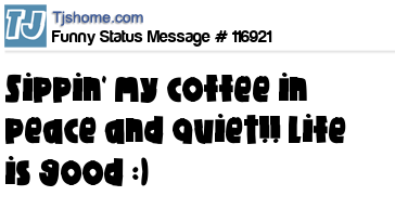 X is sippin' my coffee in peace and quiet!! Life is good :)