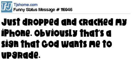 X says Just dropped and cracked my iPhone. Obviously that's a sign that God wants me to upgrade.