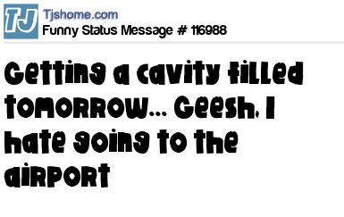 X Getting a cavity filled tomorrow... Geesh, I hate going to the airport