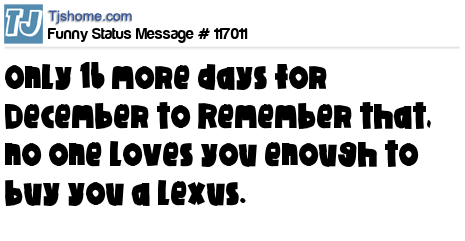 X Only 16 more days for December to Remember that, no one loves you enough to buy you a Lexus.