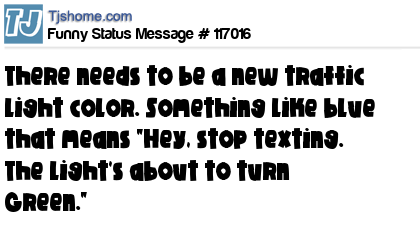 X There needs to be a new traffic light color. Something like blue that means "Hey, stop texting. The light's about to turn Green."