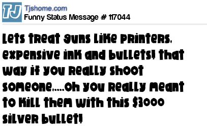 X Lets treat guns like printers, expensive ink and bullets! that way if you really shoot someone,....oh you really meant to kill them with this $3000 silver bullet!