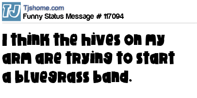 X says I think the hives on my arm are trying to start a bluegrass band.