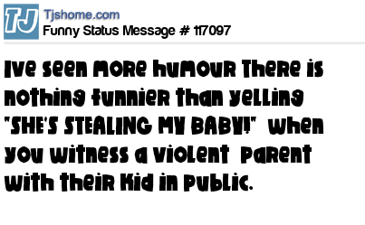 X says ive seen more humour There is nothing funnier than yelling "SHE'S STEALING MY BABY!" when you witness a violent parent with their kid in public.