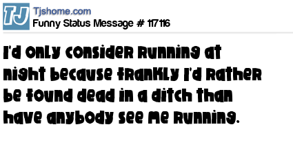 X says I'd only consider running at night because frankly I'd rather be found dead in a ditch than have anybody see me running.