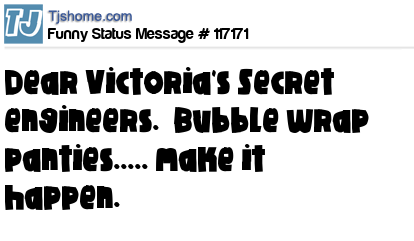 X says Dear Victoria's Secret engineers. Bubble wrap panties..... make it happen.