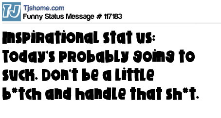 X Inspirational stat us: Today's probably going to suck. Don't be a little b*tch and handle that sh*t.