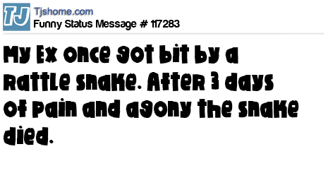 X My Ex once got bit by a rattle snake. After 3 days of pain and agony the snake died.