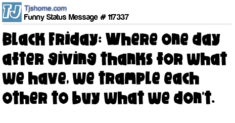 - # 162447 ...... Black Friday: Because only in America, people trample others for sales exactly one day after being thankful for what they already have.