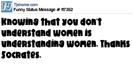 X Knowing that you don't understand women is understanding women. Thanks Socrates.