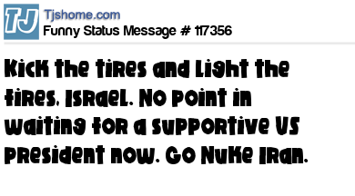 X Kick the tires and light the fires, Israel. No point in waiting for a supportive US president now. Go Nuke Iran.