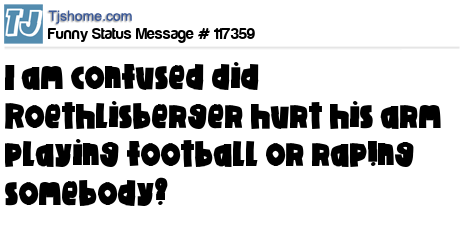 X is I am confused did Roethlisberger hurt his arm playing football or rap!ng somebody?