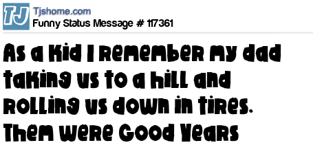 X As a kid I remember my dad taking us to a hill and rolling us down in tires. Them were Good Years