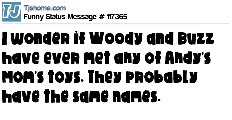 - # 48758 I wonder if Buzz and Woody ever met any of Andy's mom's toys... especially since they probably have the same names...
