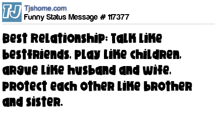 - # 158921 Best Relationship: Talk like best-friends, play like children, argue like husband and wife, protect each other like brother and sister.