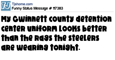 X my Gwinnett county detention center uniform looks better than the rags the steelers are wearing tonight.