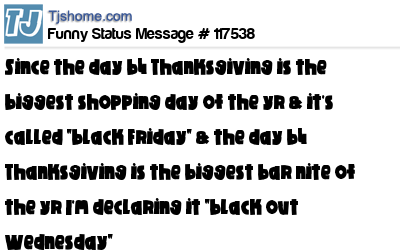 X Since the day b4 Thanksgiving is the biggest shopping day of the yr & it's called "black Friday" & the day b4 Thanksgiving is the biggest bar nite of the yr I'm declaring it "black out Wednesday"