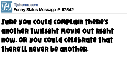 X is Sure you could complain there's another Twilight movie out right now. OR you could celebrate that there'll never be another.