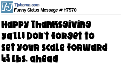 X is Happy Thanksgiving ya'll! Don't forget to set your scale forward 45 lbs. ahead