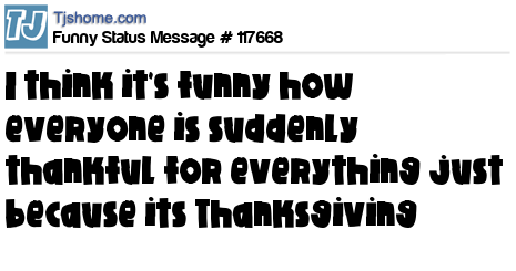 X is I think it's funny how everyone is suddenly thankful for everything just because its Thanksgiving