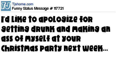 X says I'd like to apologize for getting drunk and making an ass of myself at your Christmas party next week...