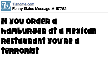 X says if you order a hamburger at a mexican restaurant you're a terrorist