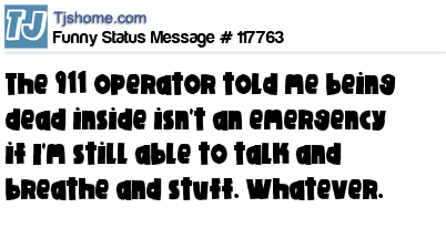 X says The 911 operator told me being dead inside isn't an emergency if I'm still able to talk and breathe and stuff. Whatever.