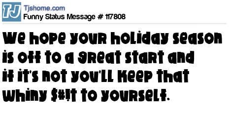 X We hope your holiday season is off to a great start and if it's not you'll keep that whiny $#!t to yourself.