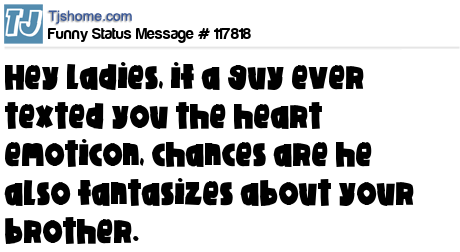 X says Hey ladies, if a guy ever texted you the heart emoticon, chances are he also fantasizes about your brother.